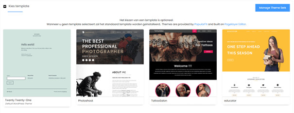 Hierna kun je het thema gaan selecteren. Het kiezen van een template is optioneel.